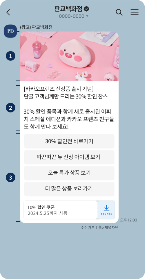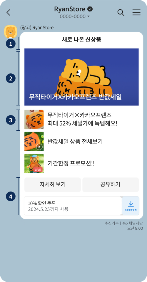 | 전송유형 | 텍스트ㆍ이미지ㆍ와이드ㆍ리스트ㆍ캐러셀ㆍ동영상 |